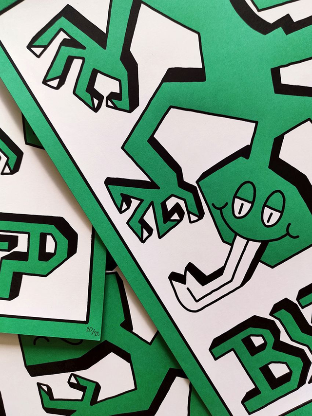 Sérigraphie 2 kooleurs 💚 30 x 40 cm 🖤 Édition numérotée & signée - 22 exemplaires 🤍 Chaque sérigraphie est imprimée artisanalement. De légers décalages ou petites traces d'impression peuvent apparaître sur certains tirages.
