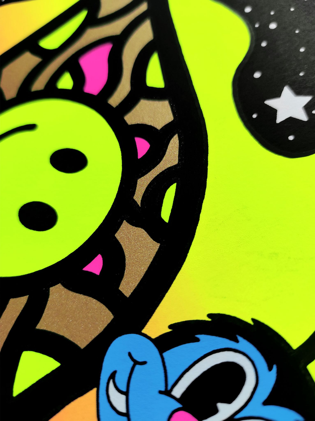 Sérigraphie 5 kooleurs 🩷 30 x 40 cm 🖤 Édition numérotée & signée - 25 exemplaires 💛 Chaque sérigraphie est imprimée artisanalement. De légers décalages ou petites traces d'impression peuvent apparaître sur certains tirages.