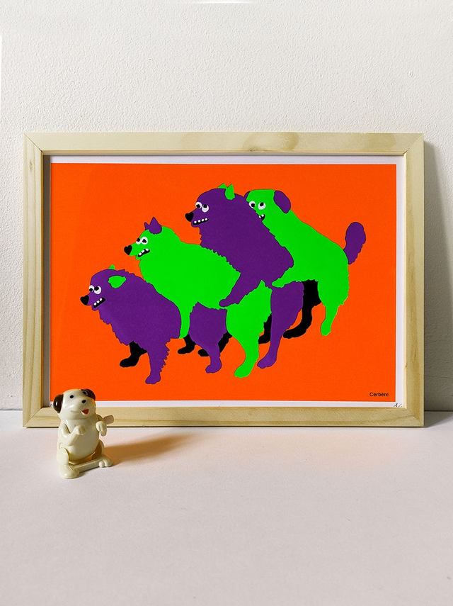 Sérigraphie 4 kooleurs 💚 21 x 29,7 cm 💜 Édition numérotée & signée - 23 exemplaires 🧡 Chaque sérigraphie est imprimée artisanalement. De légers décalages ou petites traces d'impression peuvent apparaître sur certains tirages. Déso.