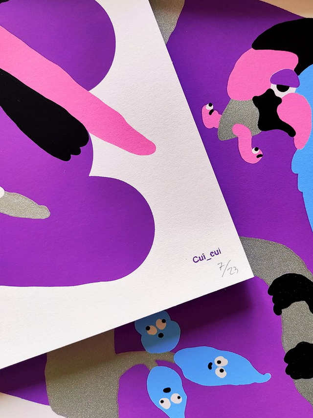 Sérigraphie 5 kooleurs 💙 30 x 40 cm 💜 Édition numérotée & signée - 23 exemplaires 🖤 Chaque sérigraphie est imprimée artisanalement. De légers décalages ou petites traces d'impression peuvent apparaître sur certains tirages. Déso.