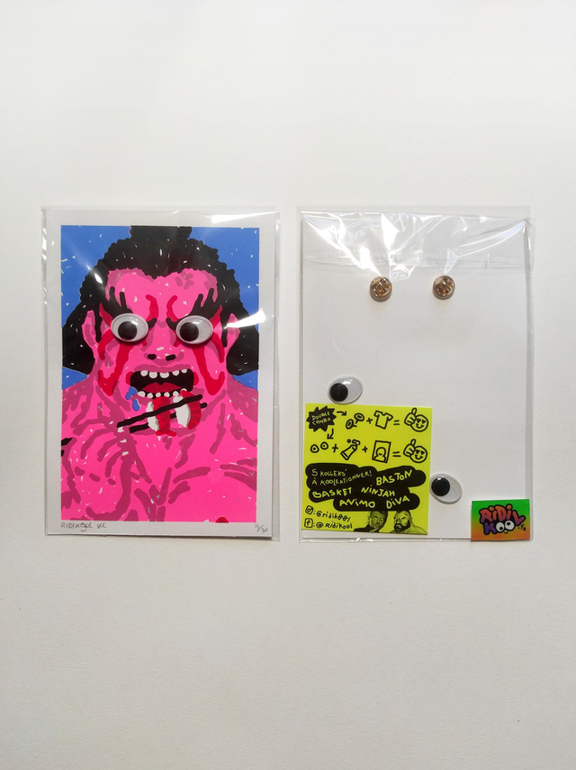 Sérigraphie 5 kooleurs 💚 11,5 x 16,5 cm 💜 Édition numérotée & signée - 30 exemplaires 🧡 Chaque carte est accompagnée d’une paire de pin’s 📌 pour parfaire ton look ainsi que d’une paire d’yeux 👀 à recoller sur la carte. 🖤 Chaque sérigraphie est imprimée artisanalement. De légers décalages ou petites traces d'impression peuvent apparaître sur certains tirages.