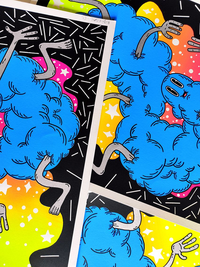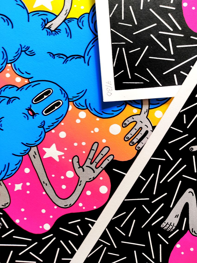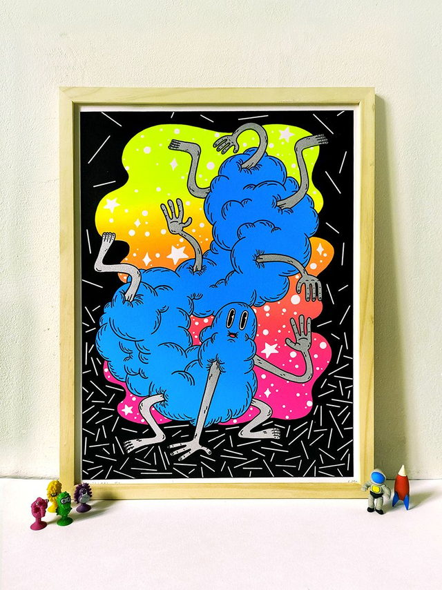 Sérigraphie 4 kooleurs 💙 30 x 40 cm 🖤 Édition numérotée & signée - 30 exemplaires 💛 Chaque sérigraphie est imprimée artisanalement. De légers décalages ou petites traces d'impression peuvent apparaître sur certains tirages.